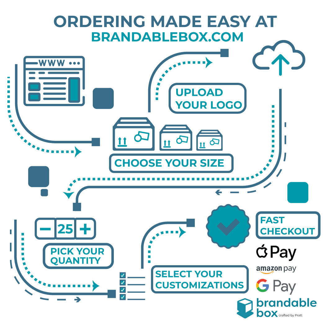 It’s easy! Our website is simple to use and mobile-friendly. Browse our packaging selection, upload your logo and check out. Your custom packaging will be printed and shipped FAST.